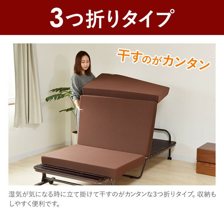 【商品名】25D高密度ウレタン 三つ折りマットレス シングル【サイズ】幅97x長さ195x厚み10cm 約5.5kg【仕様】側生地:ポリエステル100%中材:高反発ウレタンフォーム(密度25D(密度25D、190N)【その他】・マットレスは約1〜2日で復元します。